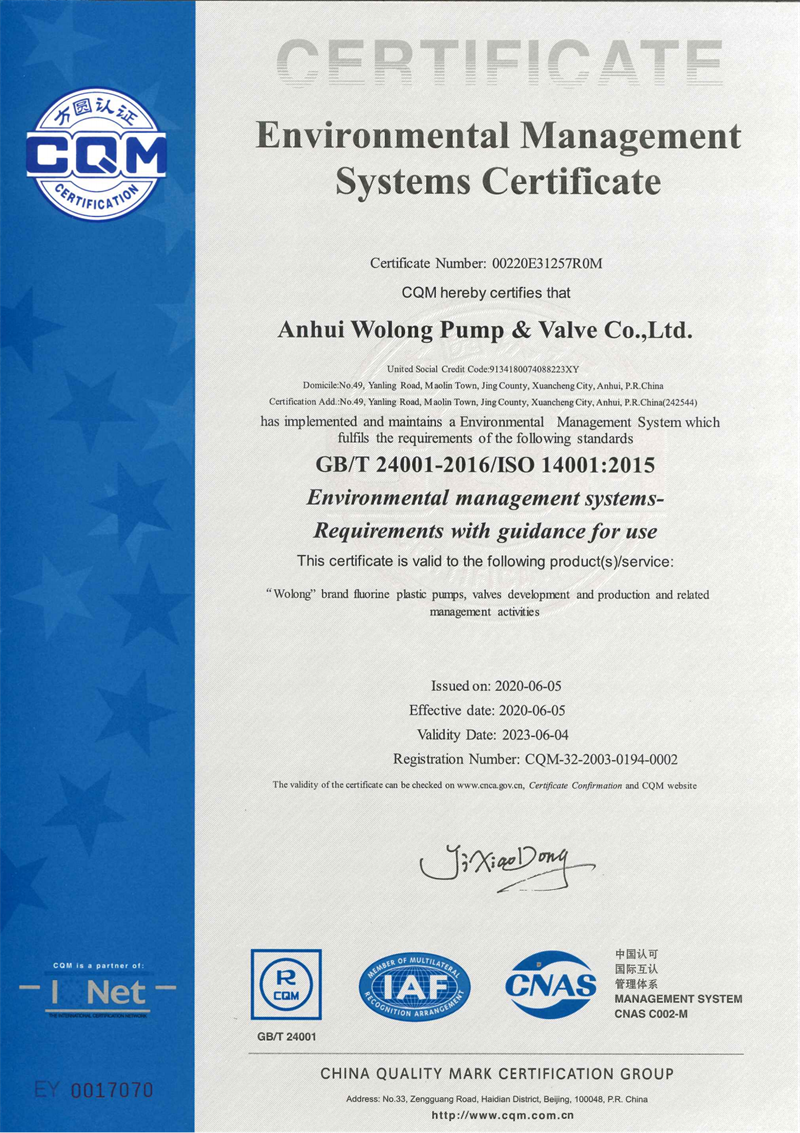安徽臥龍泵閥股份有限公司位于風(fēng)景秀麗的江南古鎮(zhèn)——安徽省涇縣茂林鎮(zhèn)。公司前身涇縣氟塑料制品廠創(chuàng)建于1985年,是國內(nèi)較早引進(jìn)中科院上海有機(jī)化學(xué)研究所專利材料——"氟塑料合金",并以此耐腐蝕材料專業(yè)生產(chǎn)制造化工泵、閥、襯氟管道等產(chǎn)品的企業(yè)。公司經(jīng)過歷次的改制變革,2015年更名為安徽臥龍泵閥股份有限公司。